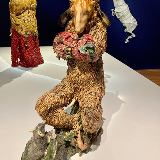 I recently visited Paris. Cold and windy, but I spent a warm and dimly lit afternoon in the Musée de la Chasse et de la Nature in the Marais. A rather grim and faintly embarrassing premise for a museum, and it's difficult to understand how it remotely speaks to the average passer-through who doesn't own a chateau and a load of massive hunting dogs. However, there was a great intervention by Carolein Smit; a gathering together of her porcelain bestiary. The stuff in the museum is itself completely grotesque—dead animals and gold, basically—so her collection of sad dogs and mice-in-pearls fits right in among the permanent displays.